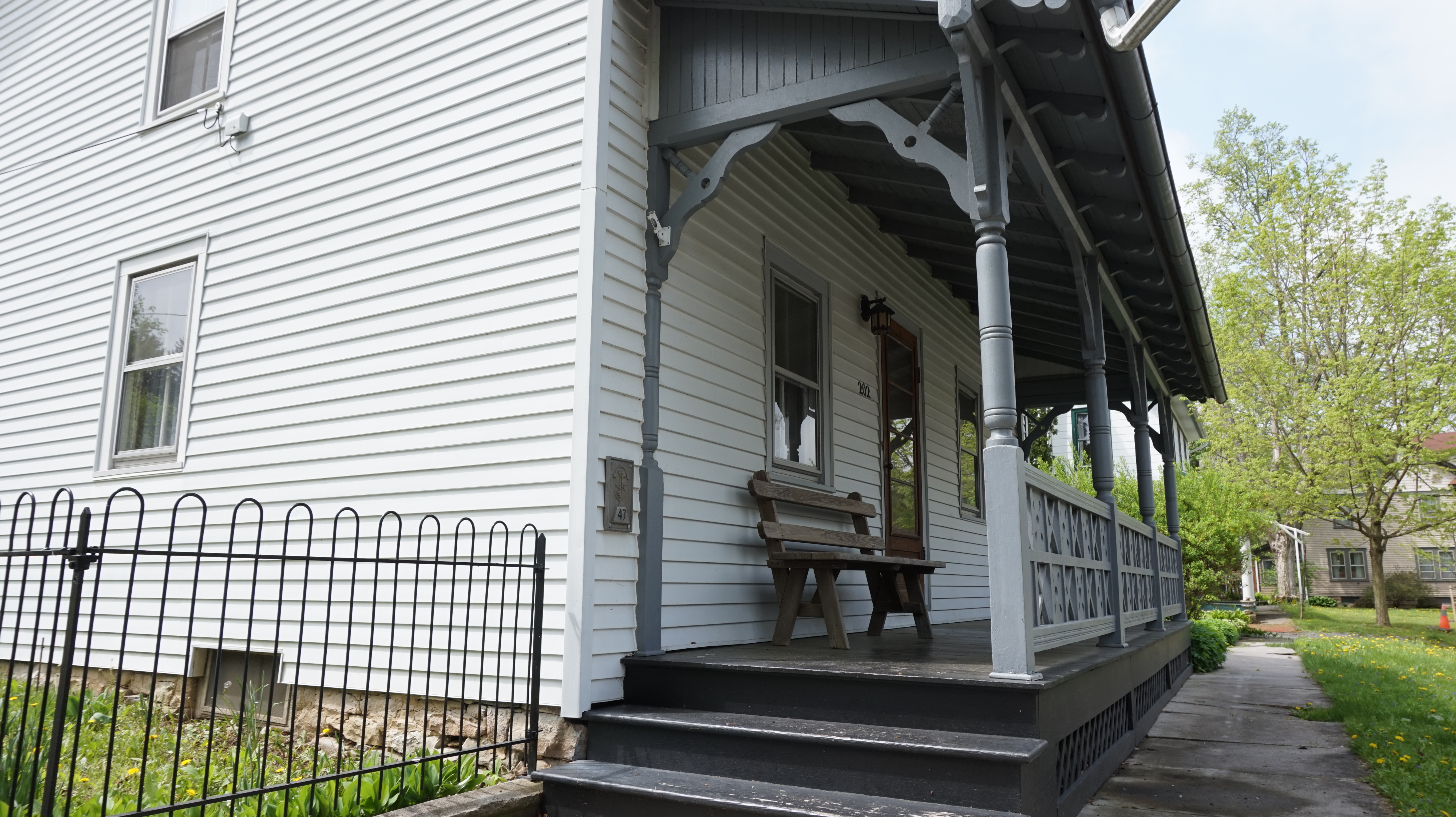 The Corls added a Victorian style porch that was later replaced with a small (roofless) porch built on the base of the original porch. You can still see evidence of the roof line of the original porch on the siding.